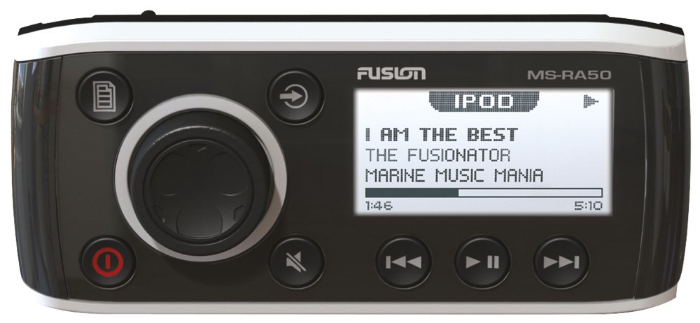 Introducing the MS-RA50, FUSION's most compact and cost effective marine stereo ever! The MS-RA50 has a shallow mount depth of only 55mm (2 1/8"), perfect for small boats and personal watercraft. Not only is the MS-RA50 compact in size it also features iPod and iPhone music playback and FUSION's innovative easy to use music interface.